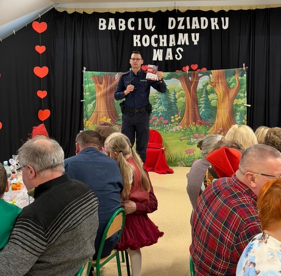 Z okazji Dnia Babci i Dziadka policjanci spotkali się z dziećmi oraz seniorami, by połączyć świąteczną atmosferę z działaniami profilaktycznymi i przypomnieć o najczęściej stosowanych metodach oszustw oraz zasadach bezpiecznego zachowania.