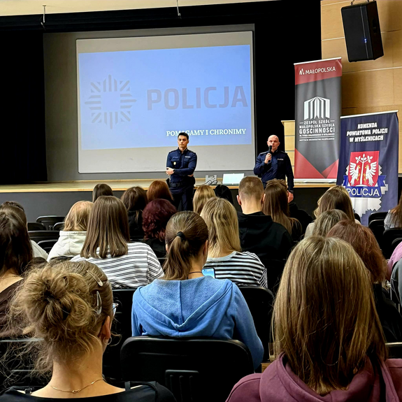 Myśleniccy policjanci promują zawód policjanta w szkołach średnich