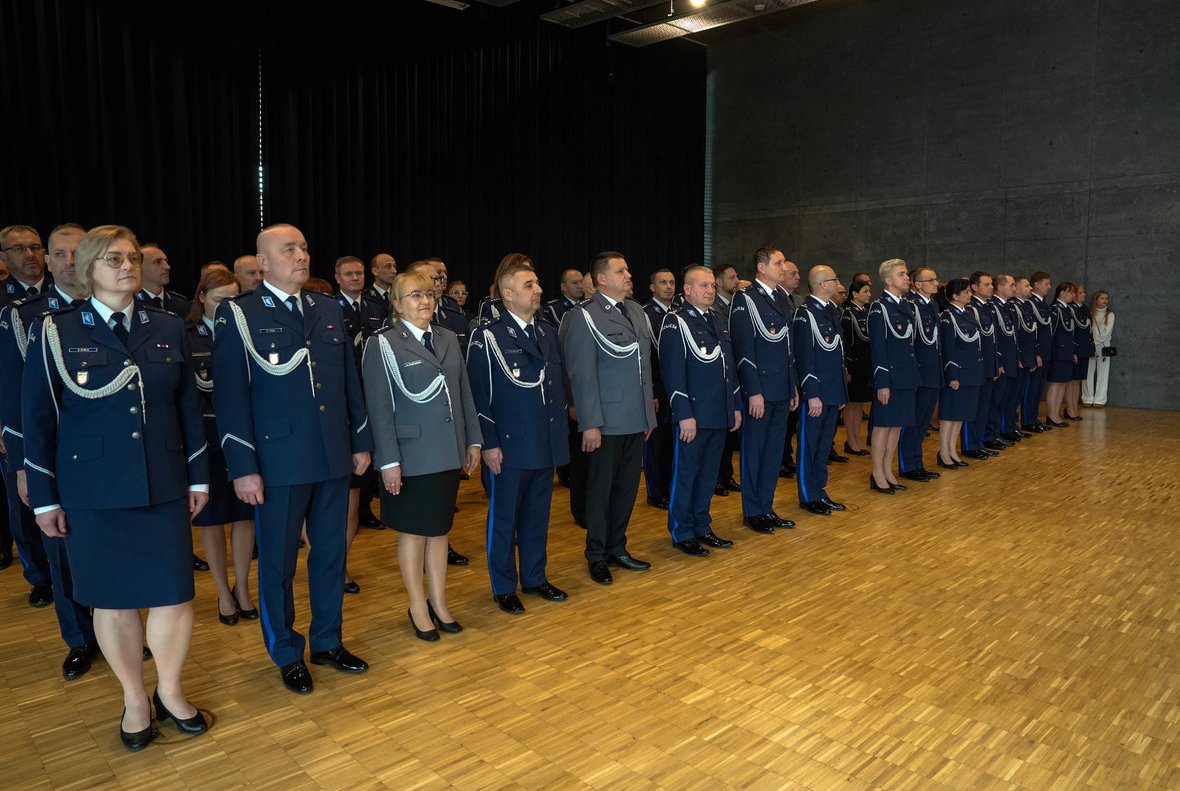 Lucyna Gajda Dyrektor Generalny Małopolskiego Urzędu Wojewódzkiego w Krakowie odczytała list dra Krzysztofa Jana Klęczara Wojewody Małopolskiego – noszenie munduru policyjnego i praca w poszczególnych strukturach komend i jednostek jest wyjątkową formą służby publicznej, wymagającą odwagi, gotowości do poświęcenia i determinacji w osiąganiu zamierzonych celów. To odpowiedzialna misja, od której zależy porządek publiczny i bezpieczeństwo państwa i jego obywateli. Codzienna, ciągła działalność Policji jest fundamentem ładu i stabilności, gwarantem przestrzegania prawa i zapobiegania przestępczości.