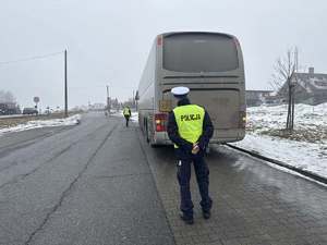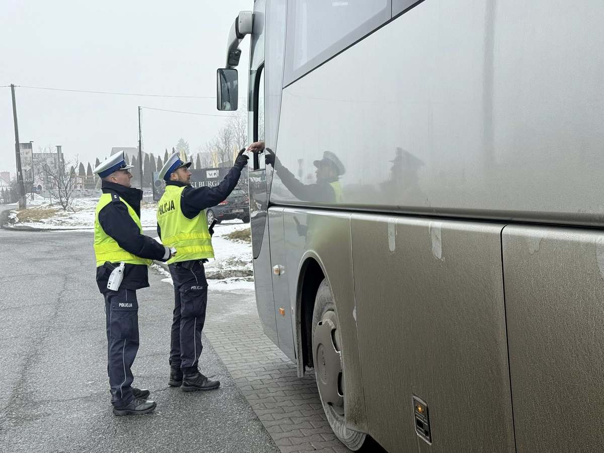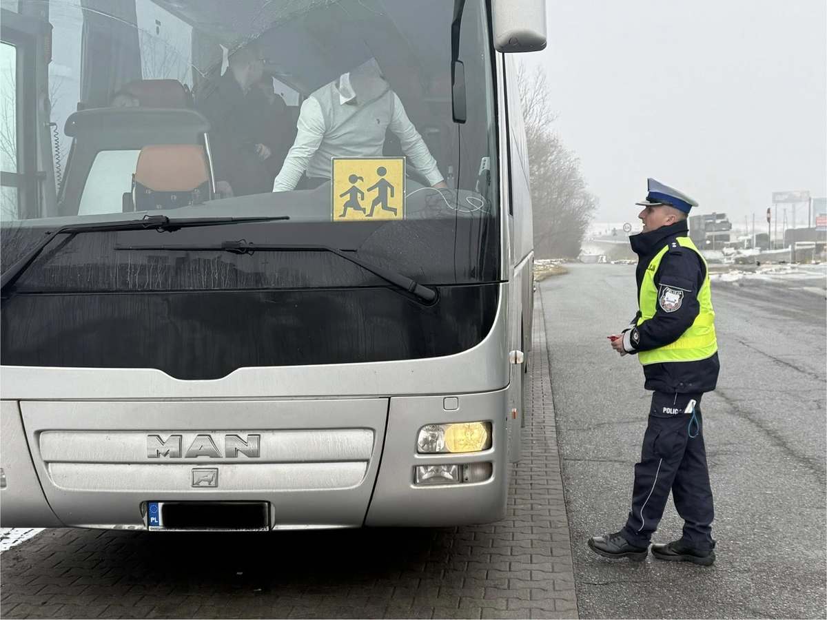 Kontrole autokarów w ramach „Bezpiecznych Ferii”. Policjanci dbają o bezpieczeństwo najmłodszych podróżnych
