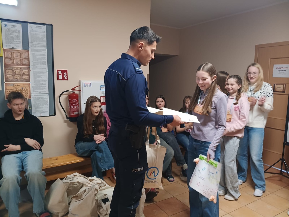 5 lutego 2025 roku policjanci z Komendy Powiatowej Policji w Myślenicach odwiedzili uczestników kolonii w ośrodku rekolekcyjnym w Zawadce, gdzie w ramach obchodów Dnia Bezpiecznego Internetu przeprowadzili działania profilaktyczne dotyczące zagrożeń w sieci oraz zasad odpowiedzialnego korzystania z nowych technologii