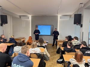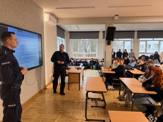 25 lutego br., Zastępca Komendanta Komisariatu Policji w Dobczycach podkom. Tomasz Wajda oraz asp. Sebastian Kruk spotkali się z uczniami klas maturalnych Zespołu Szkół w Dobczycach. Celem wizyty była promocja zawodu policjanta oraz przybliżenie młodzieży specyfiki służby w Policji. Podczas spotkania funkcjonariusze opowiedzieli o swojej codziennej pracy, zakresie obowiązków oraz wyzwaniach, z jakimi mierzą się w trakcie pełnienia służby. Przedstawili również szczegółowo proces rekrutacji do Policji – od złożenia wymaganych dokumentów, poprzez test wiedzy, test sprawności fizycznej, badania psychologiczne i lekarskie, aż po rozmowę kwalifikacyjną. Mundurowi omówili wymagania stawiane kandydatom, wskazując, kto może ubiegać się o przyjęcie do służby, jakie warunki formalne należy spełnić oraz jakie predyspozycje są szczególnie istotne w tej profesji. Uczniowie uzyskali także informacje dotyczące systemu szkolenia, możliwości rozwoju zawodowego, ścieżek awansu oraz aktualnych uposażeń funkcjonariuszy. Spotkanie w Dobczycach było elementem cyklicznych działań prowadzonych przez policjantów z Myślenic, których celem jest budowanie świadomości na temat specyfiki służby oraz zachęcanie młodych ludzi do wstąpienia w szeregi Policji. Tego rodzaju inicjatywy będą kontynuowane, a kolejne spotkania z uczniami zaplanowane są w najbliższym czasie.